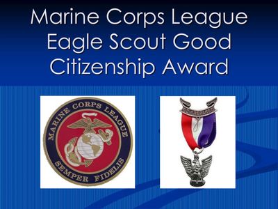 The Marine Corps League Good Citizenship award is presented to those Eagle Scouts that have shown great honor and citizenship to their organization and community. All Eagle Scouts are eligible to apply. After the application has been approved, contact will be made to confirm the date, time, and location for presentation (usually done at their Eagle Court of Honor).